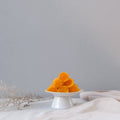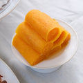 Rolos de folhas finissimas de gema de ovo envolvidas em calda de açucar.